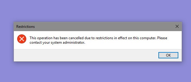 When you’re done, you can restart Windows, log onto that user account, and then test things by trying to run one of those apps. You should see a “Restrictions” window pop-up letting you know that you can’t run the app.