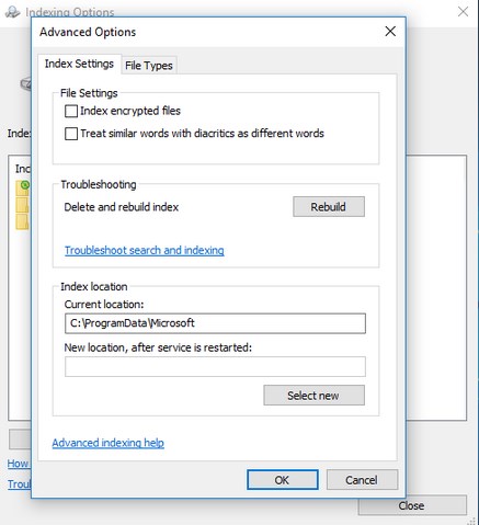 You can also choose to delete and rebuild the index from scratch from here by clicking the “Rebuild” button. This will take some time, but could fix problems if Windows search doesn’t seem to be working properly.
