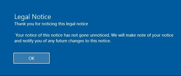 You can now exit Registry Editor. The next time restart Windows, you should see the legal notice before you reach the sign in screen.