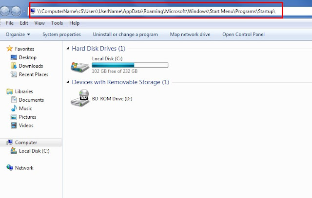 It isn’t so obvious for administrators to find the start up folder of a user, when accessing a computer remotely on windows 7