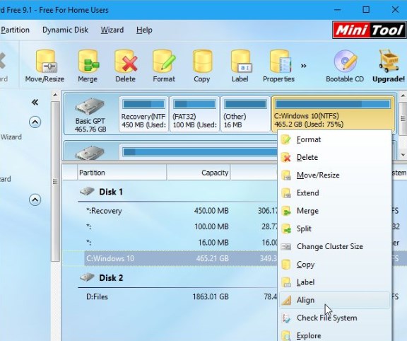 If you’ve migrated your operating system from a mechanical hard drive to a solid-state drive, the partitions may not be properly aligned. This could result in slower performance, which you can fix by re-aligning them.