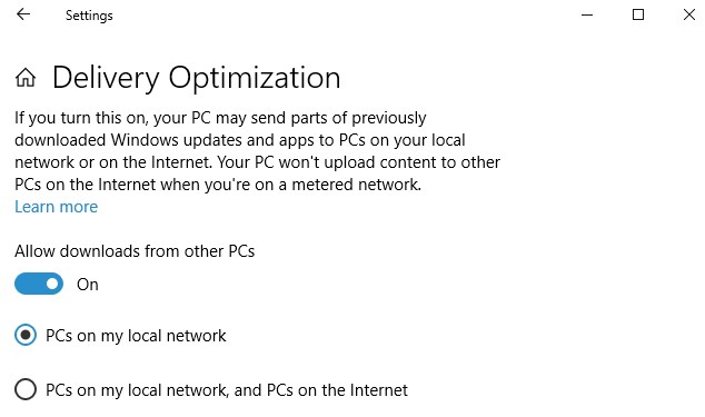 Advanced Options > Delivery Optimization, and then set the “Allow