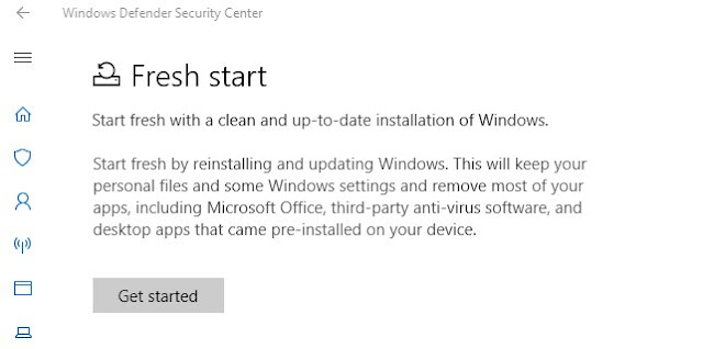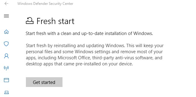 “Additional Info” under Fresh Start and click the “Get Started” button