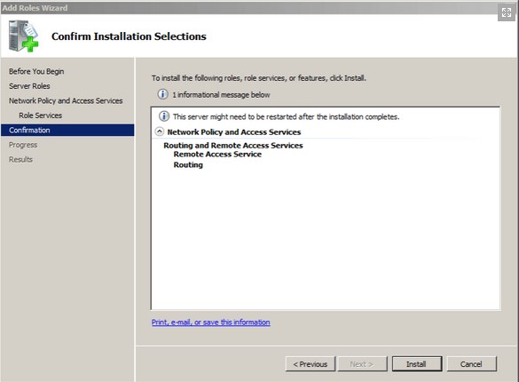 Select the Role Services “Routing and Remote Access Services”