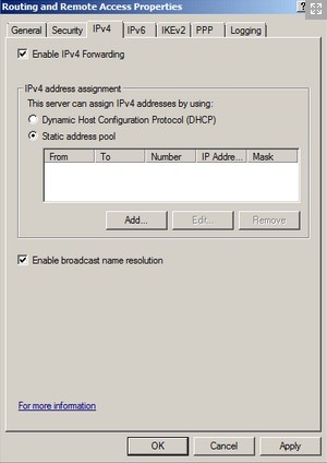 Click on the IPv4 Tab and check “Static address pool”