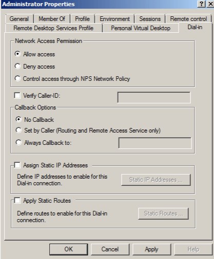 Allow access for users “Network Access Permission”. You can set that in de Dial-In Tab under the User Premission.
