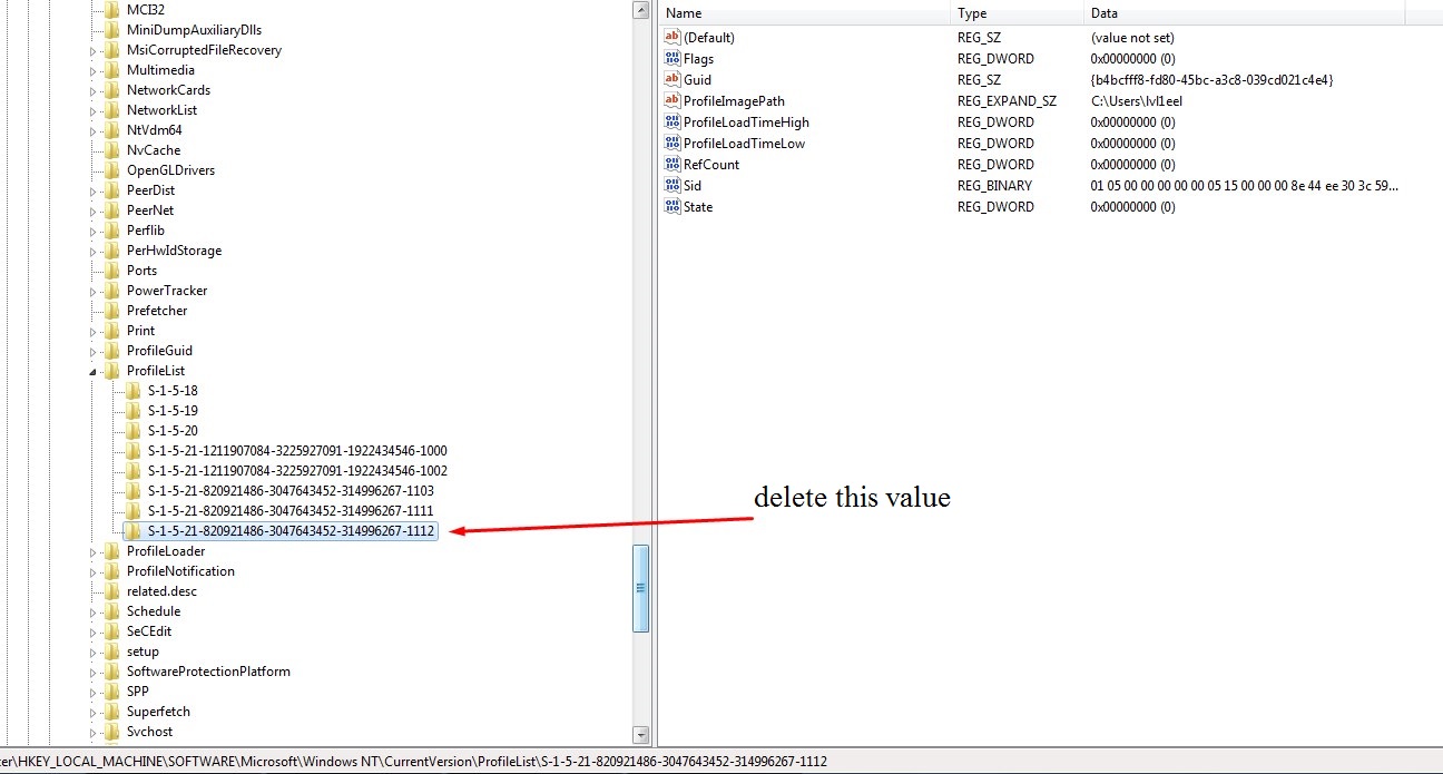 HKEY_LOCAL_MACHINESOFTWAREMicrosoftWindows NTCurrentVersionProfileList