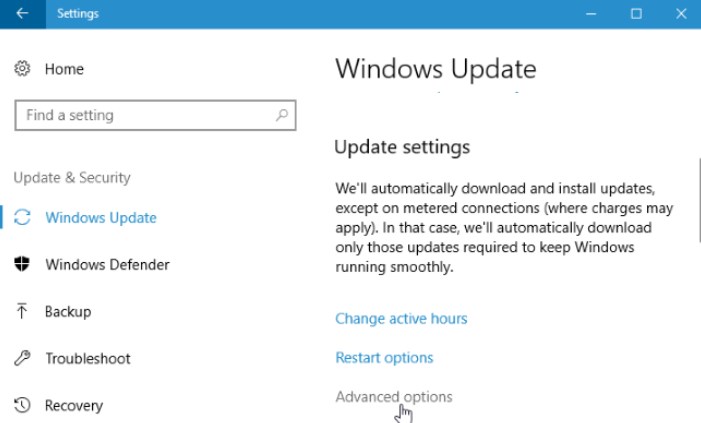Click the “Advanced Options” link under Update settings in Windows Update pane.