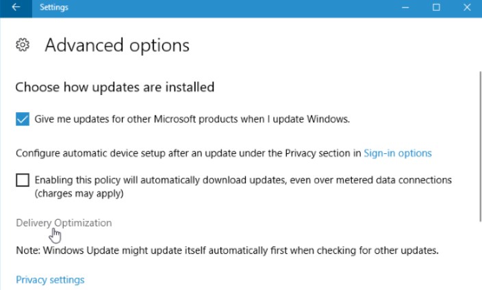 Click the “Delivery Optimization” link here.