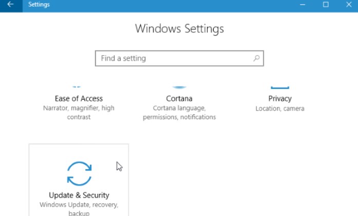 In the Settings window that appears, click (or tap) the “Update & Security” icon.