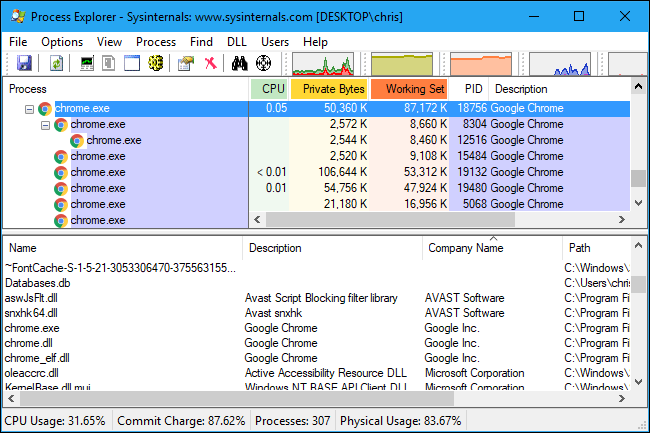 For example, it’s normal to see a variety of DLLs made by “Microsoft Corporation” here, as they’re part of Windows. It’s also normal to see DLLs made by the same company as the process in question “Google Inc.” in the case of Chrome in the screenshot below.