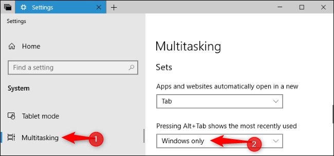 “Pressing Alt+Tab shows the most recently used” option, and then select